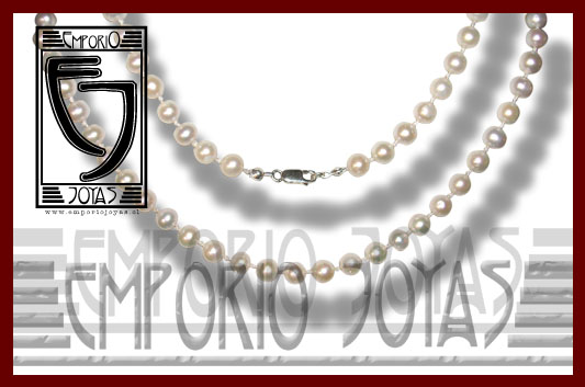 Collar de Perlas Cultivadas Collar de Perlas Cultivadas Freshwater Broche Modelo Mosquetón en Plata Fina Perlas cultivadas Legítimas Freshwater de 6.0- 7.0 mm. aprox. Regularmente Redondas- Semi-redondas Tono: Blanco Largo: 47 cm. aprox. Hilado: a mano nudo a nudo $ 29.500.- CONSULTE OPCIÓN MAYOR LARGO Y DOBLE VUELTA, BROCHE ORO 18. kl. PRODUCTO A PEDIDO entrega 4 días